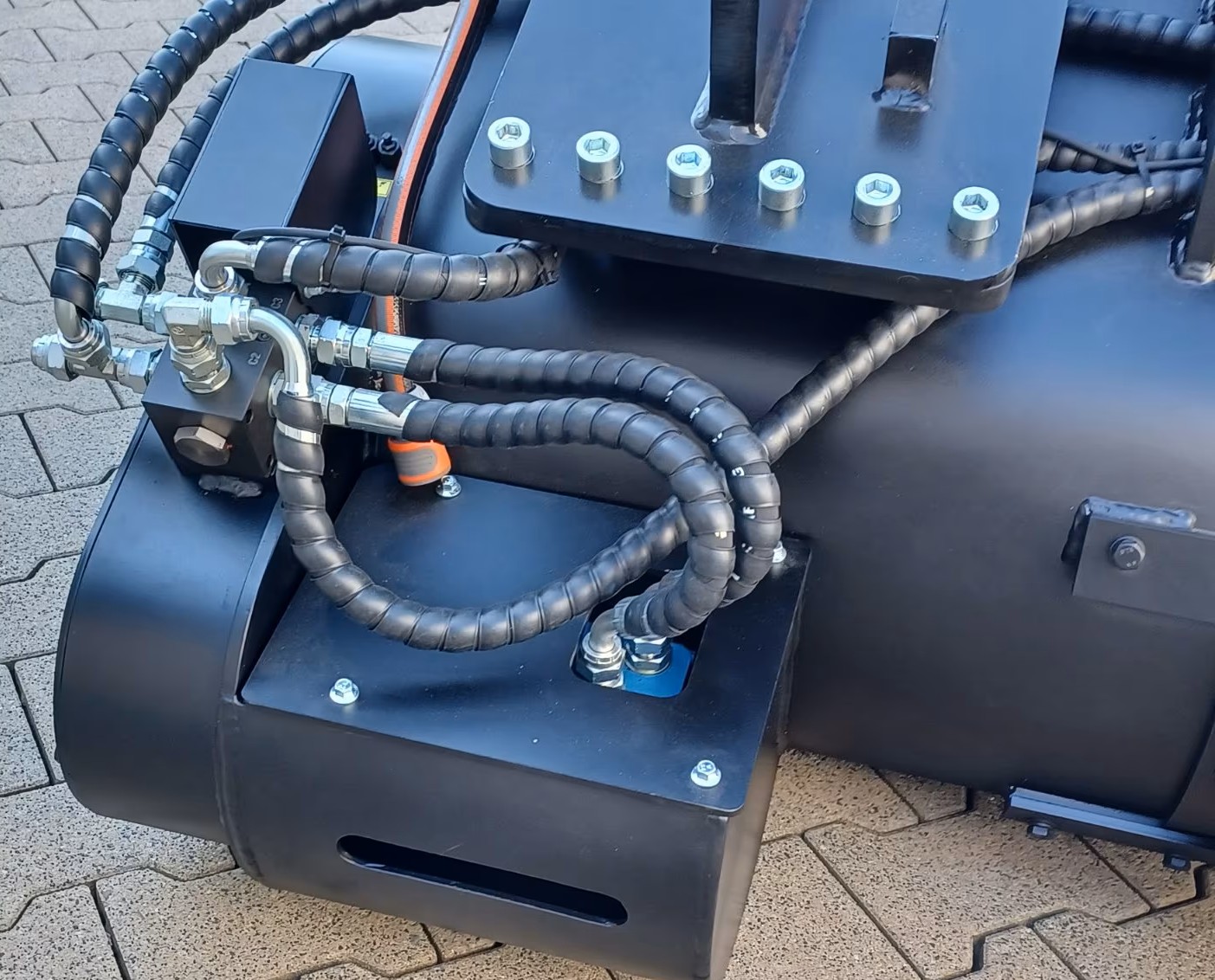 Dank der cleveren Konstruktion lässt sich die Mischschaufel wahlweise an einem oder zwei Steuerkreisen anschließen – ideal für unterschiedliche Maschinen und Hydrauliksysteme.